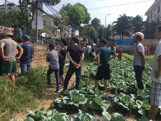 Nhiều người dân hiếu kì còn dẫm lên ruộng rau cải để xem lực lượng chức năng giải cứu con tin.
