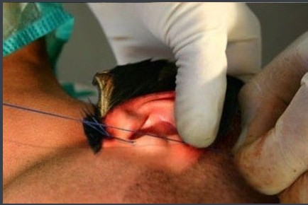 Mắt của chú chó được cắt và khâu thay thế cho mắt người.