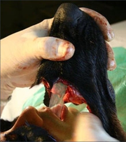 Các bác sĩ phải căn rất chuẩn để ghép nguyên cả mũi và mõm chó vào mũi và miệng người.