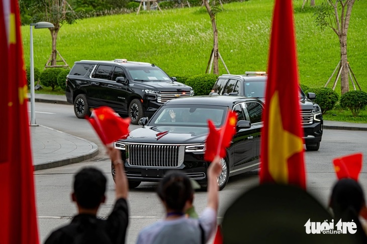 Đoàn xe hộ tống Tổng Bí thư, Chủ tịch Trung Quốc Tập Cận Bình di chuyển tới Phủ Chủ tịch - Ảnh: NAM TRẦN
