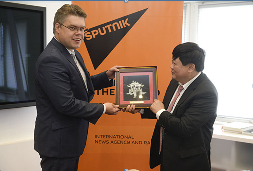 PGS,TS. Nguyễn Thế Kỷ, Tổng giám đốc VOV thăm và làm việc với hãng Sputnik, Liên bang Nga (Nguồn: Sputnik/Mikhail Voskresenskty)