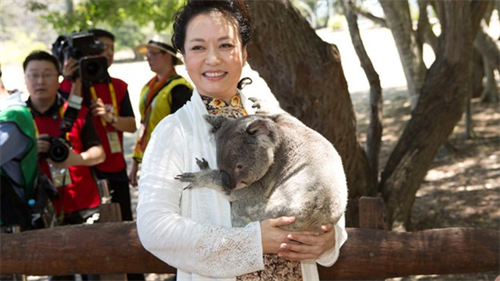 Đệ nhất phu nhân Trung Quốc Bành Lệ Viện bế gấu kaola. (Nguồn: AFP)
