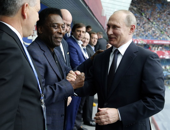 Vị tổng thống của nước chủ nhà đích thân đi chào hỏi các nhân vật nổi tiếng làng túc cầu, nổi bật là huyền thoại bóng đá Pele.