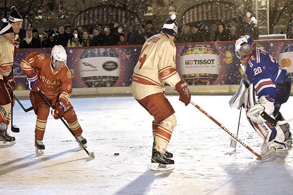 Tổng thống Nga Vladimir Putin tham gia trận đấu hockey ban đêm trên Quảng trường Đỏ. Nguồn ảnh: RT.