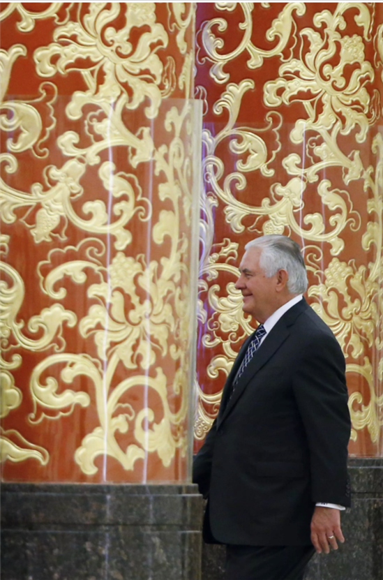 Tháp tùng Tổng thống Trump còn có Ngoại trưởng Mỹ Rex Tillerson. Ảnh: AP