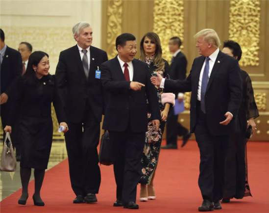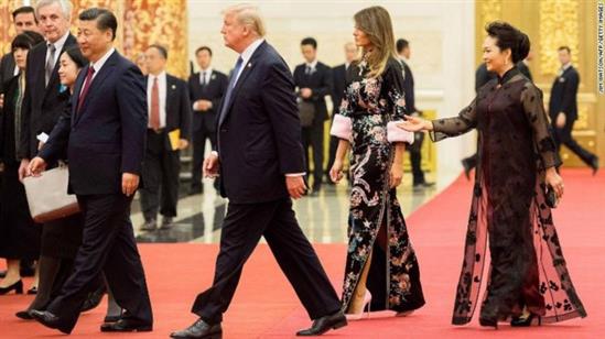 Sáng 9/11, lễ đón chính thức Tổng thống Mỹ Donald Trump và phu nhân Melania Trump đã diễn ra tại Đại lễ đường Nhân dân (Bắc Kinh, Trung Quốc).