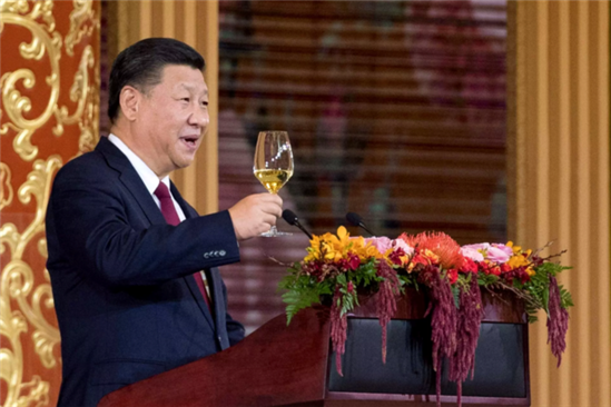 Nâng ly tại quốc yến, Chủ tịch Tập khẳng định quan hệ Trung - Mỹ đang tiến triển từng ngày. Nhà lãnh đạo Trung Quốc cho rằng hai nước đang phải đối mặt với những thử thách nhất định, nhưng có tiềm năng tăng trưởng vô tận. Ảnh: AFP