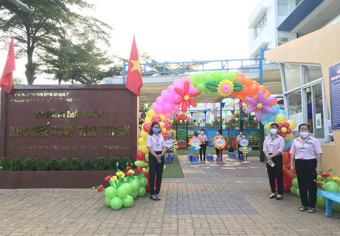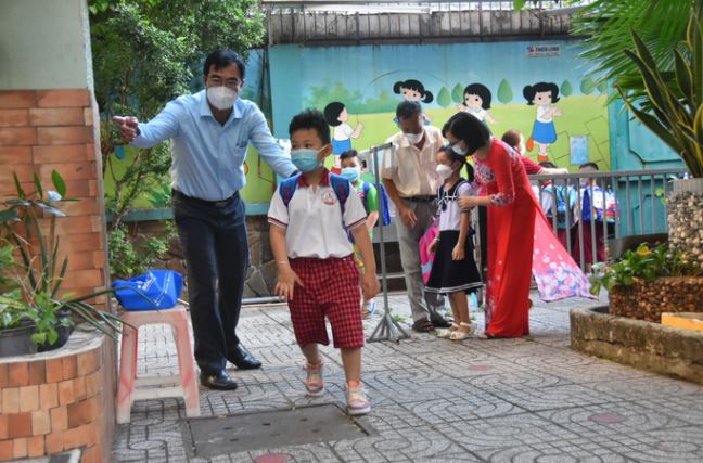 Dưới đây là một số hình ảnh trong ngày đầu tiên trở lại trường của học sinh từ mầm non đến lớp 6 tại TP HCM.