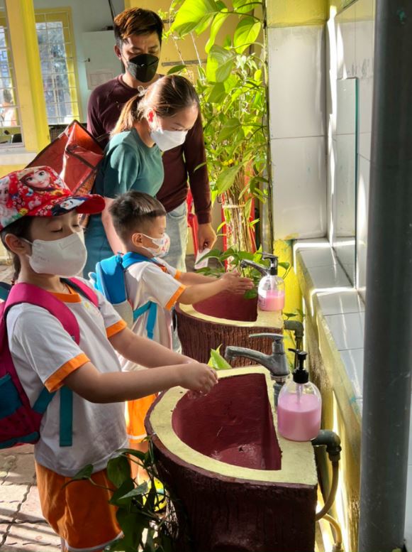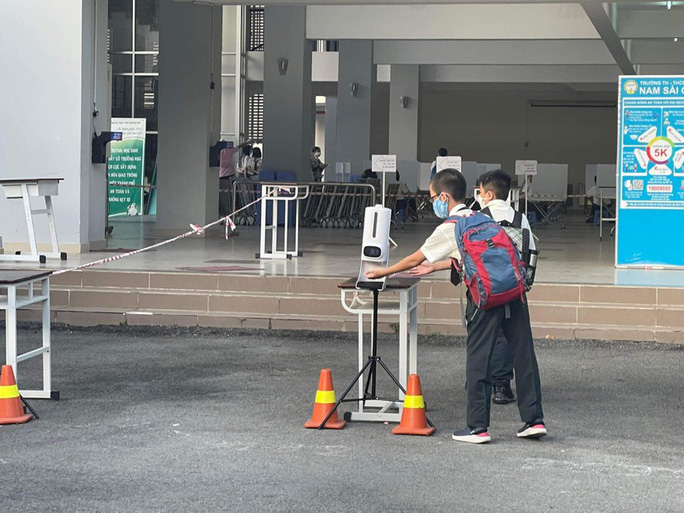 Theo chị Vy, trước đó, nhà trường đã tổ chức cho học sinh đến sinh hoạt nội quy, nhận lớp, gặp gỡ giáo viên. Nhà trường cũng tập dượt các phương án phòng chống dịch cho cả phụ huynh và học sinh.
