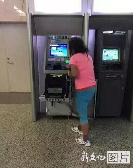 Cô gái dùng tay không lôi hết các bộ phận của chiếc máy ATM ra ngoài mà không cần dùng đến bất cứ dụng cụ nào.