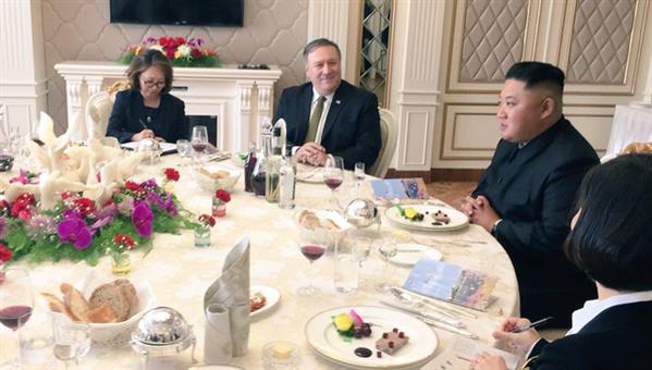 Nhà lãnh đạo Kim Jong-un và Ngoại trưởng Pompeo ăn trưa tại Bình Nhưỡng. (Ảnh: Kylie Atwood)