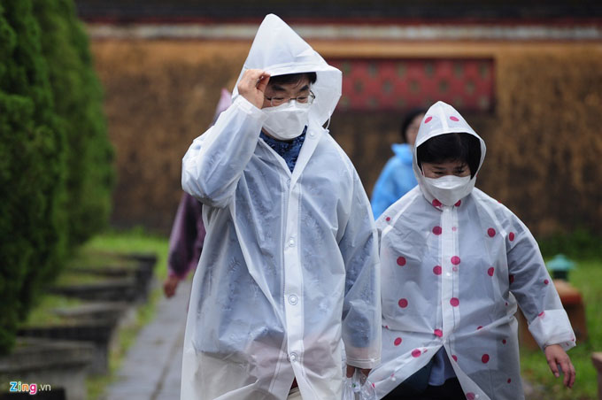 Tại thành phố Huế (Thừa Thiên - Huế), các đoàn du khách khi tham quan Đại Nội đều đeo khẩu trang ngay từ khi ra khỏi cửa khách sạn.