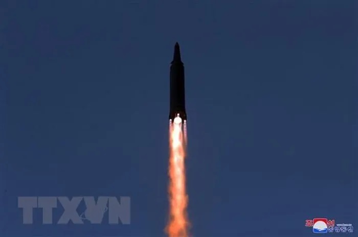 Vụ phóng thử tên lửa siêu vượt âm do Viện Khoa học Quốc phòng Triều Tiên thực hiện tại một địa điểm chưa xác định. (Ảnh minh họa. Yonhap/TTXVN).