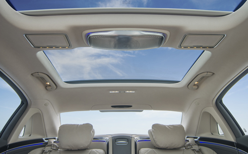 Xe trang bị hệ thống âm thanh vòm Burmester® high-end 3D 24 loa với tổng công suất 1.540 watt, cửa sổ trời siêu rộng với kính đổi màu Magic Sky Control.