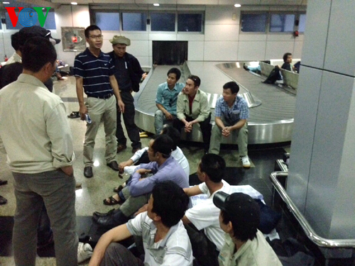 Các công nhân đi trên chuyến bay mang số hiệu VN-9052 của Hãng hàng không quốc gia Việt Nam (Vietnam Airlines) và dự kiến về tới sân bay Nội Bài lúc 12h50 hôm nay (10/8).