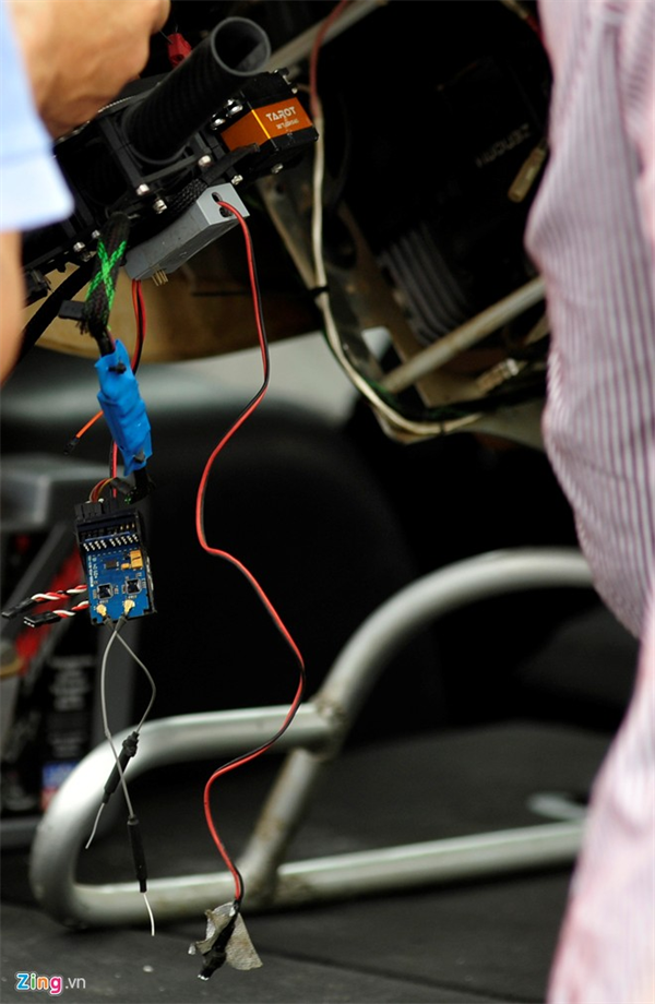 Dây, mảng mạch bị bung ra. Trước đó chiếc camera gắn ở đầu máy bay cũng đã được tháo khỏi.
