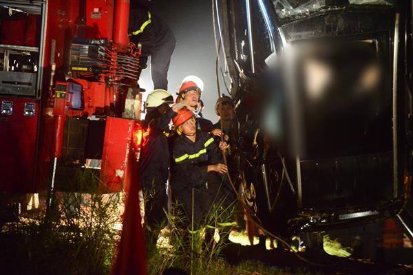 Bên trong xe có 2 thi thể mắc kẹt.
