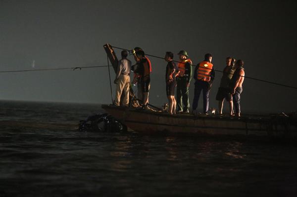 3. Các lực lượng chức năng đang triển khai các biện pháp xác định tìm vi trí chiếc xe bị rơi để trục vớt. Lực lượng CSGT đường thủy và Bộ Tư lệnh Thủ đô đã huy động nhiều tàu, thuyền chuyên dụng và của người dân tham gia tìm kiếm cứu hộ, cứu nạn.