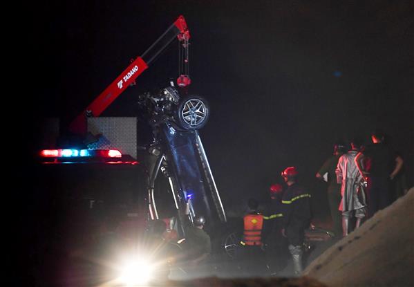 2h50: Chiếc xe gặp nạn được đưa lên bờ thành công, nghi có 2 thi thể mắc kẹt bên trong. Ông Khuất Việt Hùng, Phó Chủ tịch chuyên trách Ủy ban An toàn giao thông Quốc gia xác nhận với báo Trí Thức Trẻ có 2 nạn nhân trên xe gồm 1 nam và 1 nữ đã tử vong, được đưa vào cáng chuyển lên xe cấp cứu.