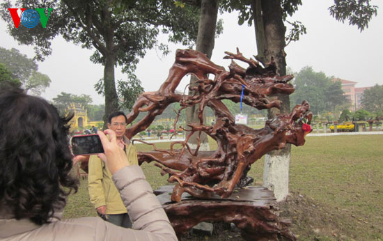 Chiều 21/1, trong thời tiết nắng ấm, rất đông du khách đã đến tham quan, chụp ảnh và không khỏi trầm trồ trước những thế dáng độc đáo, những cây cảnh quý hiếm, được bàn tay của những “nghệ nhân” cây cảnh khắp nơi – từ Hà Nội, Bắc Ninh, Bắc Giang, Nam Định… mang về.