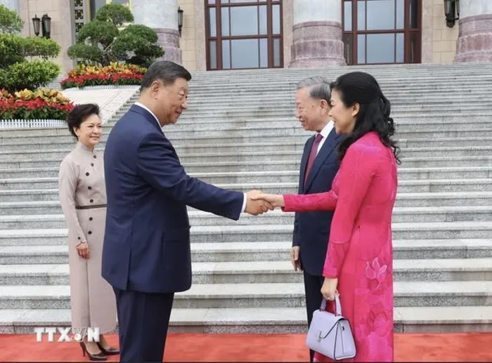 Đoàn xe chở Tổng Bí thư, Chủ tịch nước Tô Lâm và Phu nhân cùng Đoàn đại biểu cấp cao Việt Nam tiến vào Đại Lễ đường Nhân dân. Tổng Bí thư, Chủ tịch Trung Quốc Tập Cận Bình và Phu nhân nồng nhiệt chào đón Tổng Bí thư, Chủ tịch nước Tô Lâm và Phu nhân. Hai bên giới thiệu các quan chức có mặt tại Lễ đón.