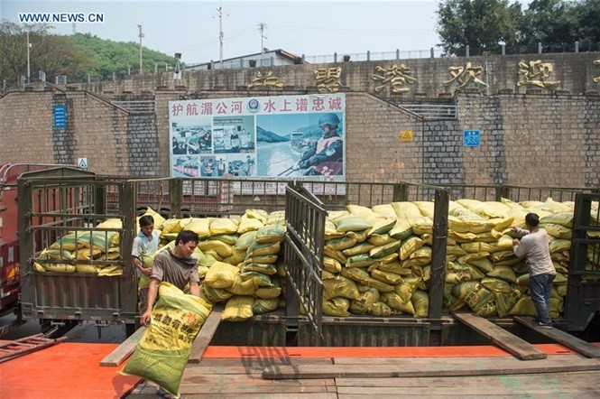 Các hoạt động bốc dỡ hàng hóa tại cảng Guan Lei phía thượng nguồn vẫn hoạt động bình thường