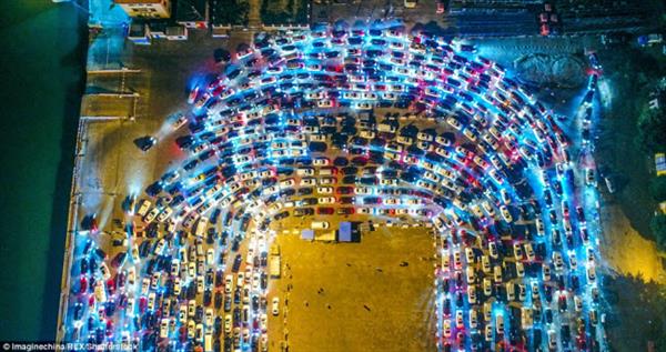 Nhìn từ trên cao, cảnh tượng xe ô tô xếp hàng dài chờ đợi trông vô cùng đẹp mắt.