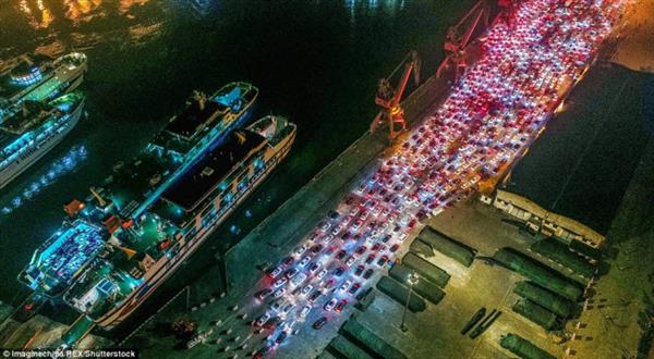 Daily Mail đăng tải loạt ảnh giao thông bị tắc nghẽn tại đảo Hải Nam, Trung Quốc khiến nhiều người kinh ngạc. Dòng xe hơn 10.000 chiếc chở hơn 50.000 du khách bị tắc nghẽn đến 10km khi chờ phà tại cảng Hải Khẩu từ ngày 19/2 đến 21/2. Dòng người đông đúc trở về nhà sau 7 ngày nghỉ ngơi trên hòn đảo xinh đẹp này đã khiến bến phà quá tải.