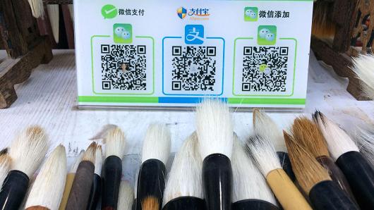 Khách hàng thanh toán những chiếc bút lông này thông qua các ứng dụng trong hình. Ảnh: CNBC.