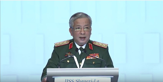 Thứ trưởng Quốc phòng Việt Nam, Thượng tướng Nguyễn Chí Vịnh khẳng định, “nếu như ai đó muốn chứng minh chủ quyền của mình hay đưa ra lý lẽ thì họ sẽ lên diễn đàn một cách công khai minh bạch chứ không phải là phát tờ rơi gây tranh cãi”. Ảnh: IISS.