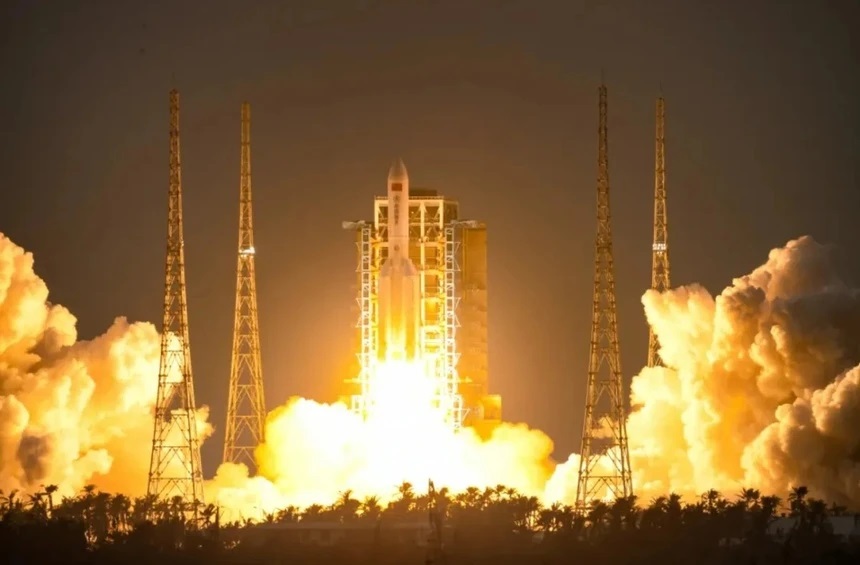 Tên lửa Long March 5B cất cánh từ Văn Xương, ngày 15/12/2024, mang theo nhóm vệ tinh Guowang đầu tiên. Nguồn: Ourspace.