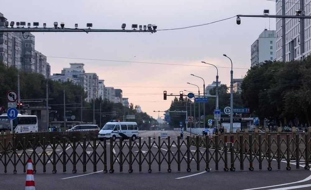 Nhiều tuyến đường ở Bắc Kinh bị chặn hôm 16/8 để chuẩn bị cho buổi tổng duyệt trước lễ duyệt binh. (Ảnh: Reuters)