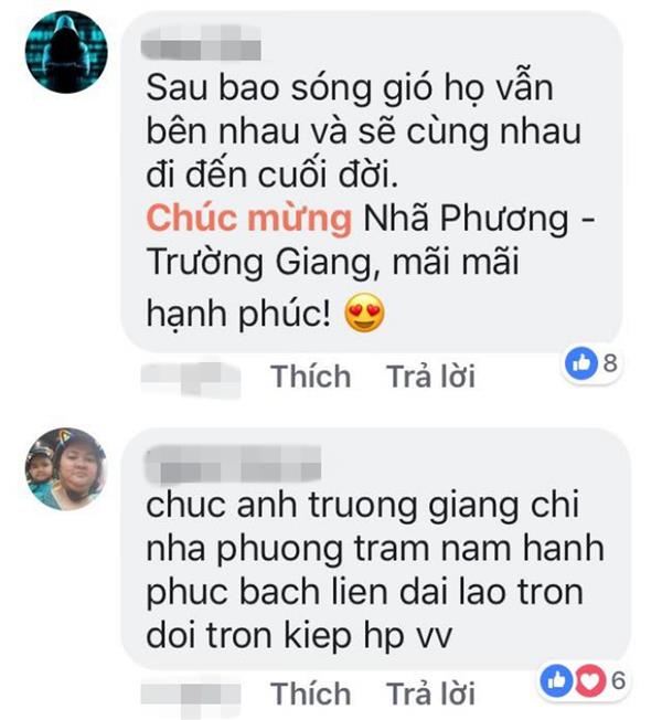 Trong khoảng thời gian này, dạo trên facebook chúng ta sẽ bắt gặp được rất nhiều bình luận háo hức và mong ngóng đôi “trai tài gái sắc” này xuất hiện tại lễ đường để chính thức trở thành một nửa của đời nhau. Nhiều khán giả hết lời khen ngợi cặp đôi và gửi những lời chúc mong muốn Trường Giang và Nhã Phương sẽ “răng long đầu bạc” mãi mãi hạnh phúc về sau.