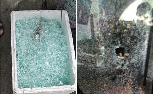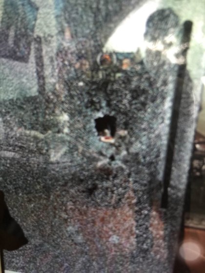 Đạn xuyên qua cửa kính làm vỡ vụn tấm kính lớn