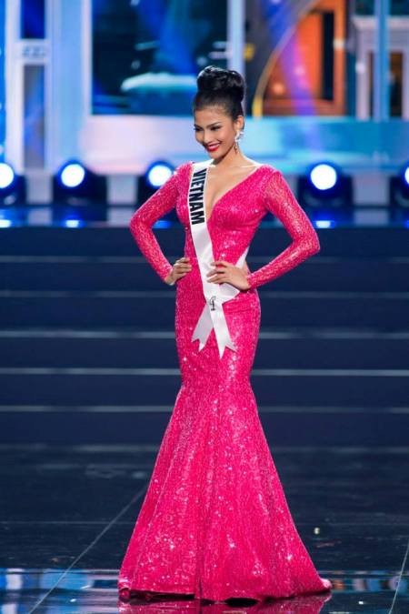Với bộ váy dạ hội nổi bật, Trương Thị May đã không làm phụ lòng khán giả quê nhà