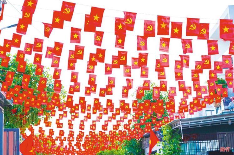 Những ngày thu lịch sử, nhiều tuyến phố tại Hà Tĩnh đang khoác lên mình sắc đỏ rực rỡ của màu cờ Tổ quốc. Ảnh: Hoàng - Thùy.