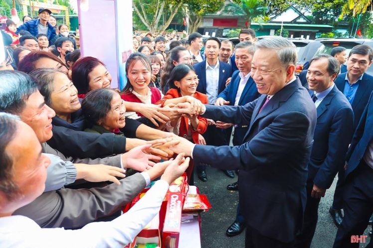 Tổng Bí thư Tô Lâm vui mừng gặp gỡ, trò chuyện cùng bà con nhân dân Hương Sơn nhân chuyến công tác tại Hà Tĩnh. Ngày 19/12/2024. Ảnh: Đình Nhất.