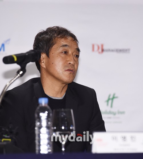 HLV người Hàn tươi cười trong buổi họp báo của mình tại chính quê hương ông.