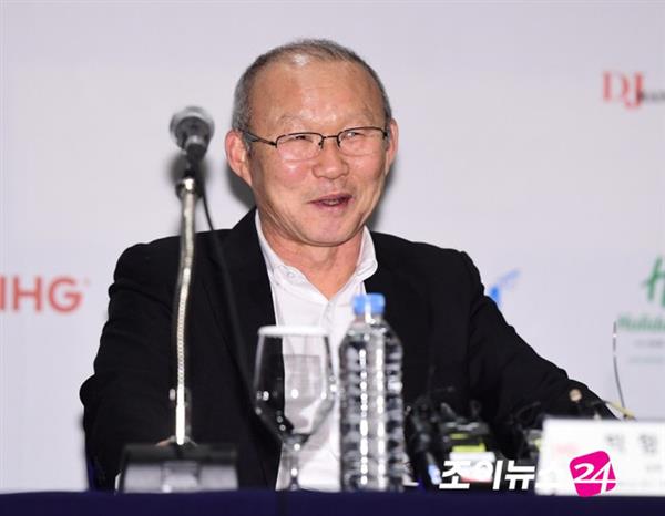 Một số hình ảnh của ông Park Hang-seo trong buổi họp báo: