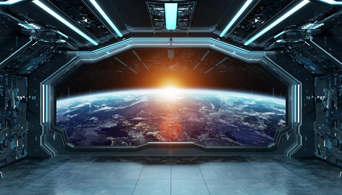 Nội thất tương lai của một con tàu vũ trụ.