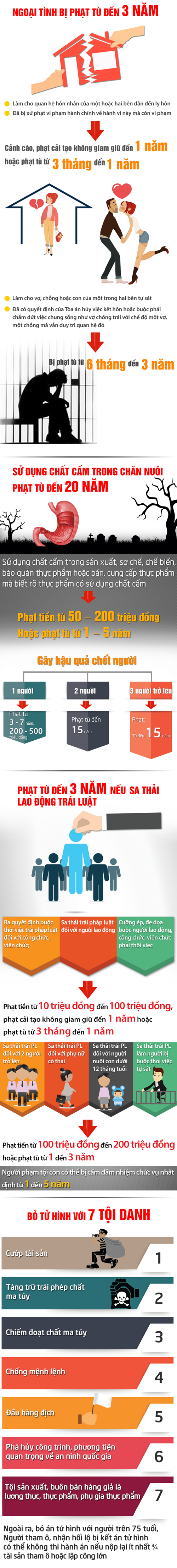 Cùng Thanh Niên điểm lại 4 điều luật về: ngoại tình, sử dụng chất cấm trong chăn nuôi, sa thải người lao động trái pháp luật, bỏ tử hình với 7 tội danh sẽ có hiệu lực vào ngày 1.7.2016 tới đây.