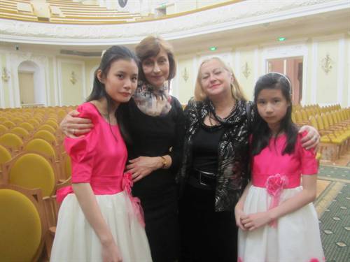 Phần trình diễn song tấu của hai chị em Diệu Linh, Diệu Ân tại phòng hòa nhạc nhạc viện Traikovsky ngày 26-2-2012