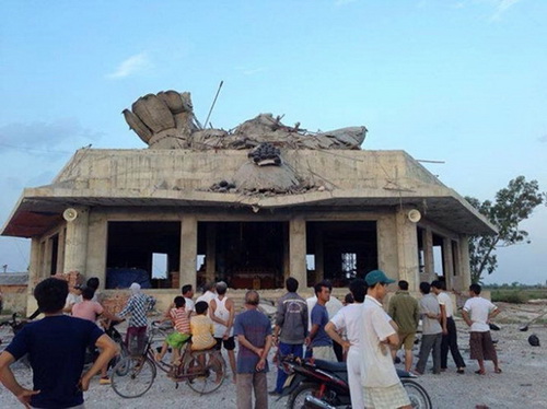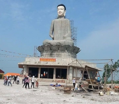 Tượng Phật cao 26m tại chùa Sắc Thiên Vương (thôn Tô Xuyên, xã An Mỹ, huyện Quỳnh Phụ, tỉnh Thái Bình) đang trong quá trình xây dựng, hoàn thiện đã bất ngờ đổ sập lúc chiều tối 7-7.
