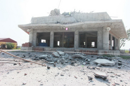 Hiện trường tượng phật bị sập tại Thái Bình - Ảnh: Tiến Thắng