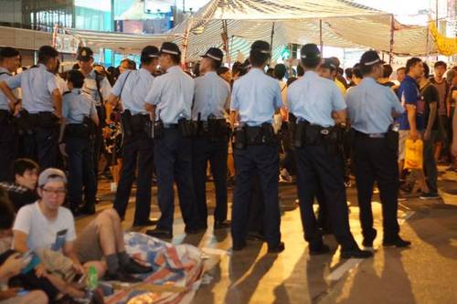 Tôi chứng kiến nhiều người vẫn kiên trì bám trụ ở khu vực Mong Kok. Sau hai ngày căng thẳng giữa những người biểu tình và những nguời phản đối biểu tình, tình hình tối 5.10 có vẻ êm dịu hơn khi cảnh sát xuất hiện dày đặc để ngăn chặn va chạm giữa hai nhóm này.