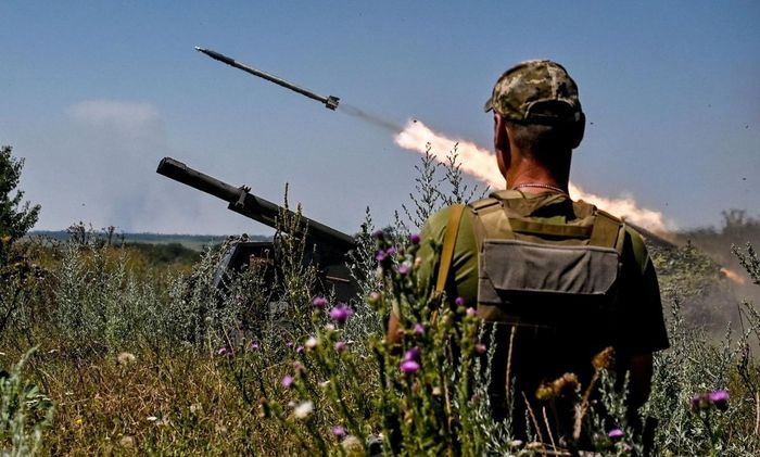 Binh sĩ Ukraine khai hỏa vào các vị trí của Nga ở vùng Zaporizhzhia, miền Đông Ukraine. Ảnh: Zuma Press.