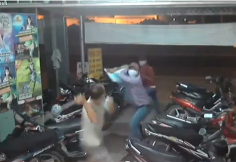 Tên cướp dùng mã tấu chém chủ tiệm để giải cứu đồng bọn.