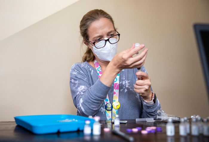 Nhân viên y tế chuẩn bị tiêm vaccine tại Mỹ vào tháng 10. Ảnh: New York Times.