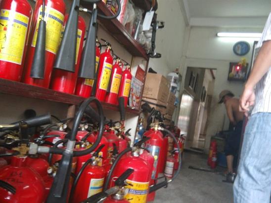 Trong khi đó tại cửa hàng thiết bị phòng cháy chữa cháy M.T trên đường 3 Tháng 2, Q.11, chủ cửa hàng cũng cho biết nơi đây tân trang hàng loạt bình loại lớn, nhỏ. Tại cổng ra vào, một nhân viên cơ sở dùng dao kỳ cọ những bình chữa cháy tróc vảy ra để sơn lên một màu đỏ y như bình mới.