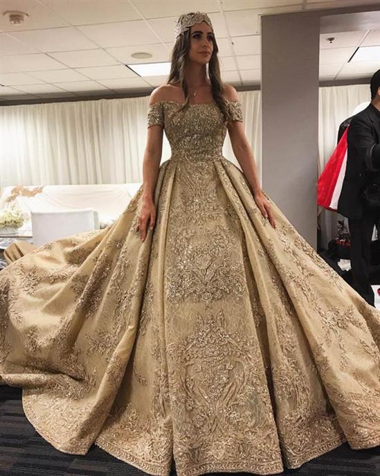 Được biết, chiếc váy đắt đỏ này là của thương hiệu Zuhair Murad danh tiếng. Vẫn là phom dáng bồng bềnh với phần vai trễ nải nữ tính nhưng điều làm chiếc váy này "đắt giá" đến vậy chính là những chi tiết thêu tay cầu kỳ trên khắp thân váy cùng phần đuôi dài thướt tha.